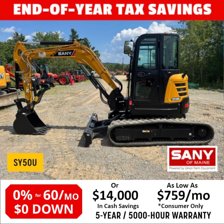 SANY Savings: SY35U Mini Excavator w/ straight blade