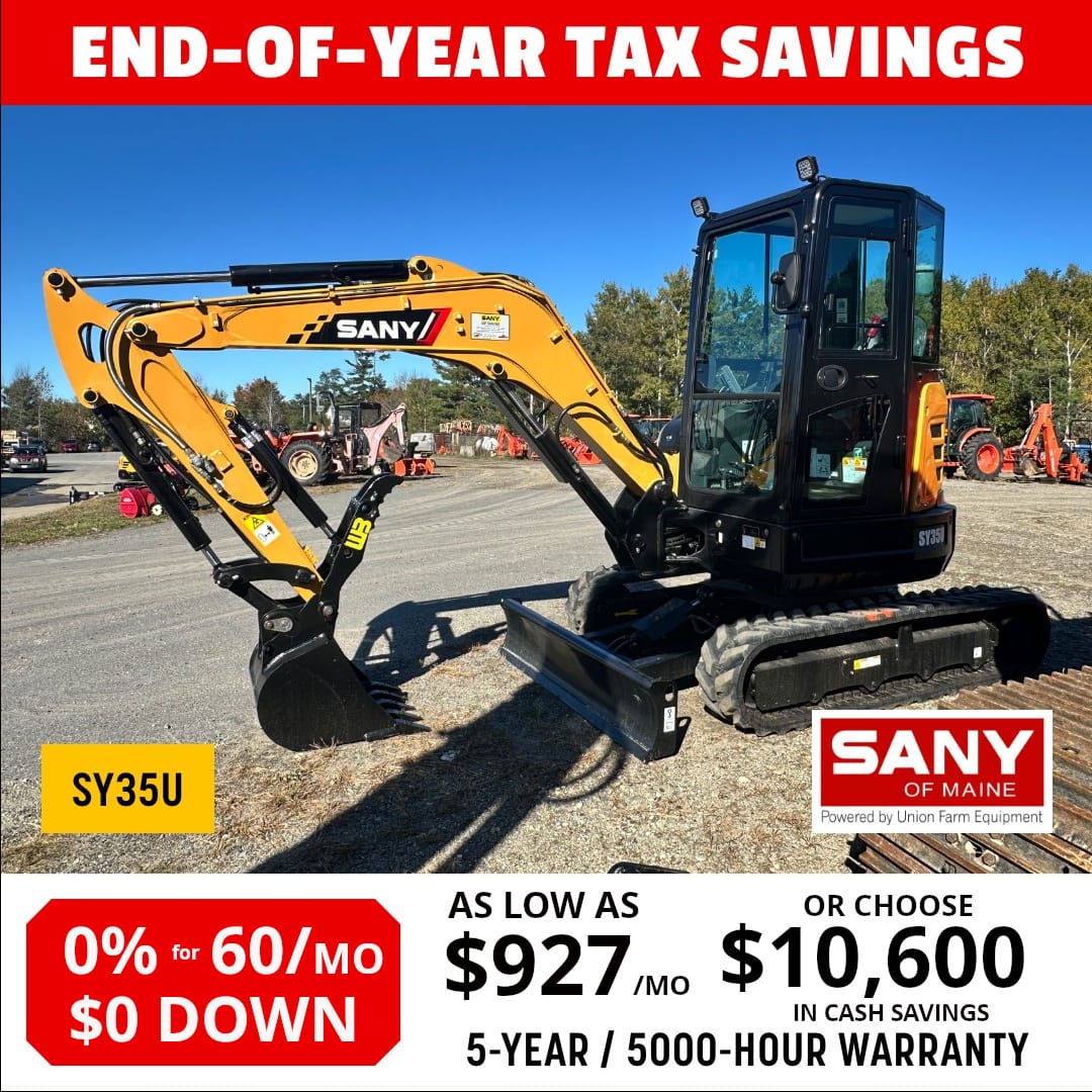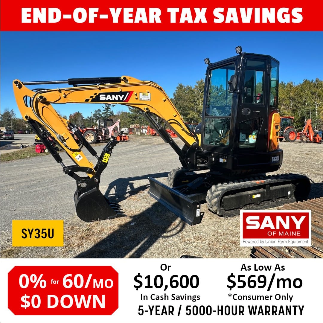 * Limited time offer. Terms and conditions apply. Only available on eligible equipment. Call Sany of Maine for more information and if you qualify.